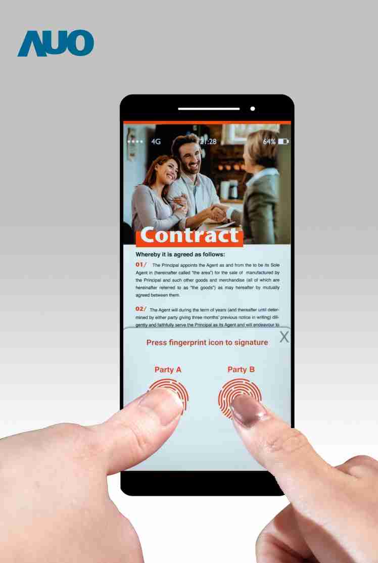 尊龙集团结合指纹辨识、、、、触控、、、显示的三合一 LCD 面板提供 50 毫米x 50 毫米的大感测面积,,,,多指指纹辨识特别适用金融交易,,,,大幅提升安全性。。