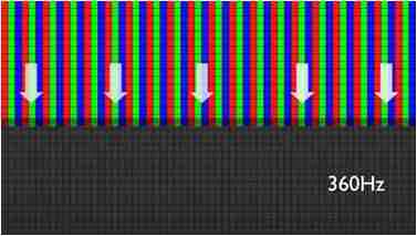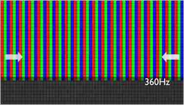 传统液晶驱动是从左到右单向进行,,在画面更新速度愈来越愈快的情况下,,位于驱动线路末端的右下角区域,,画素的闸极来不及在短时间内获得足够电压,,,,无法显示出正确的颜色资讯。。。。 |